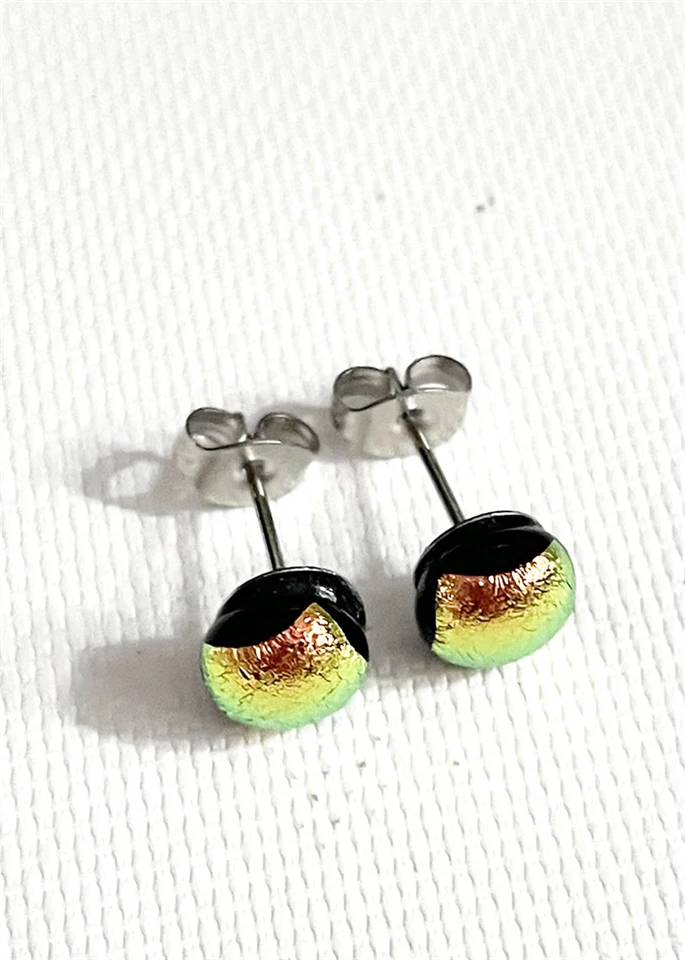 Arany selyemgubó fülbevaló. Üveg mérete: 0,7 x 0,7 cm. Pici.