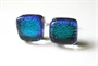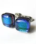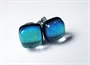 Szemből tengerzöld, oldalról kék és lila árnyalatú dichroic fülbevaló. Átmérője: 0,8 cm.